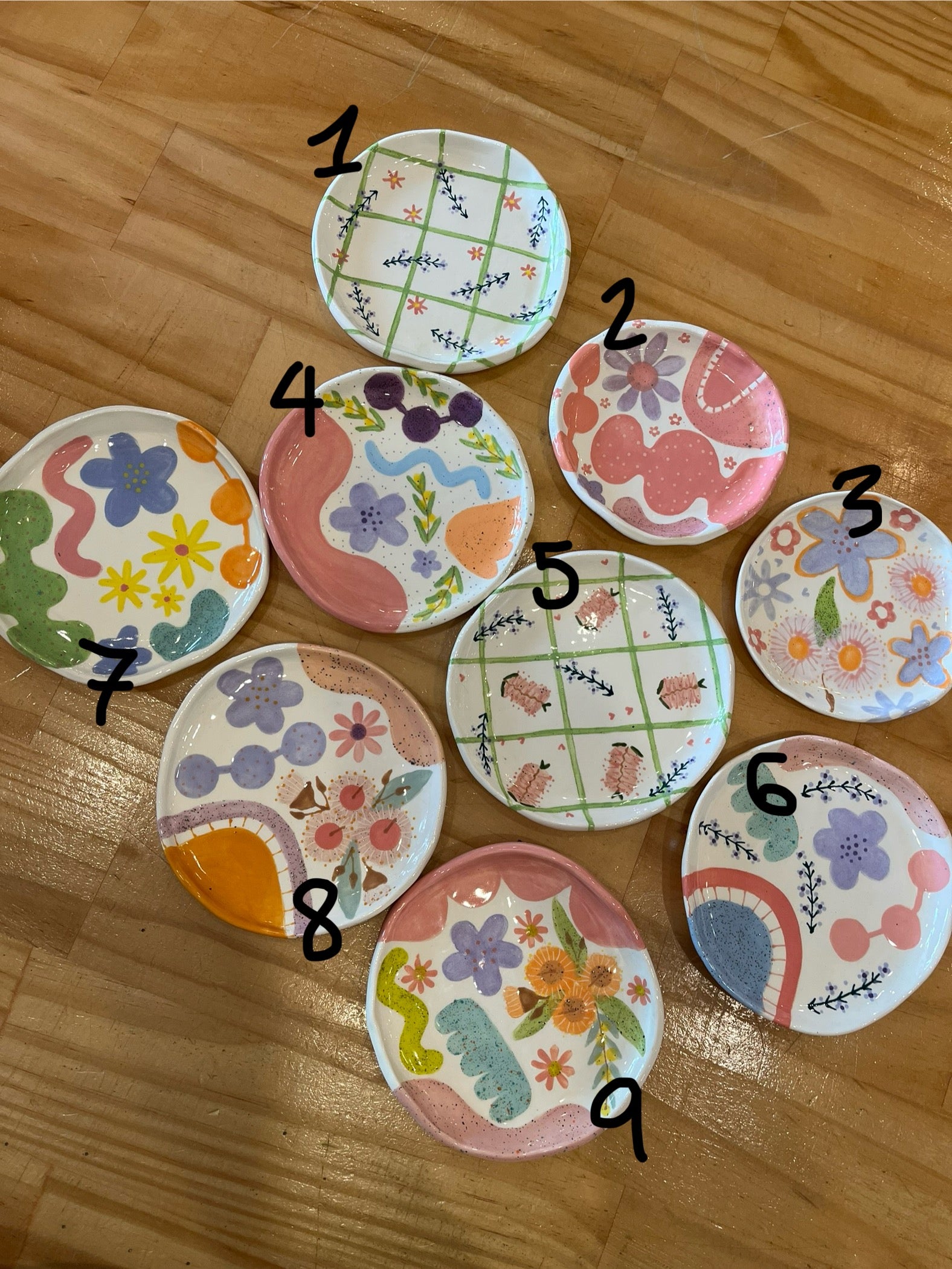 Hand Painted by Chimerical Homewares - these dishes are great for your little trinkets or an afternoon snack with your cuppa. these dishes are hand made and hand painted - ranging from 12cm to 14cm in diameter.