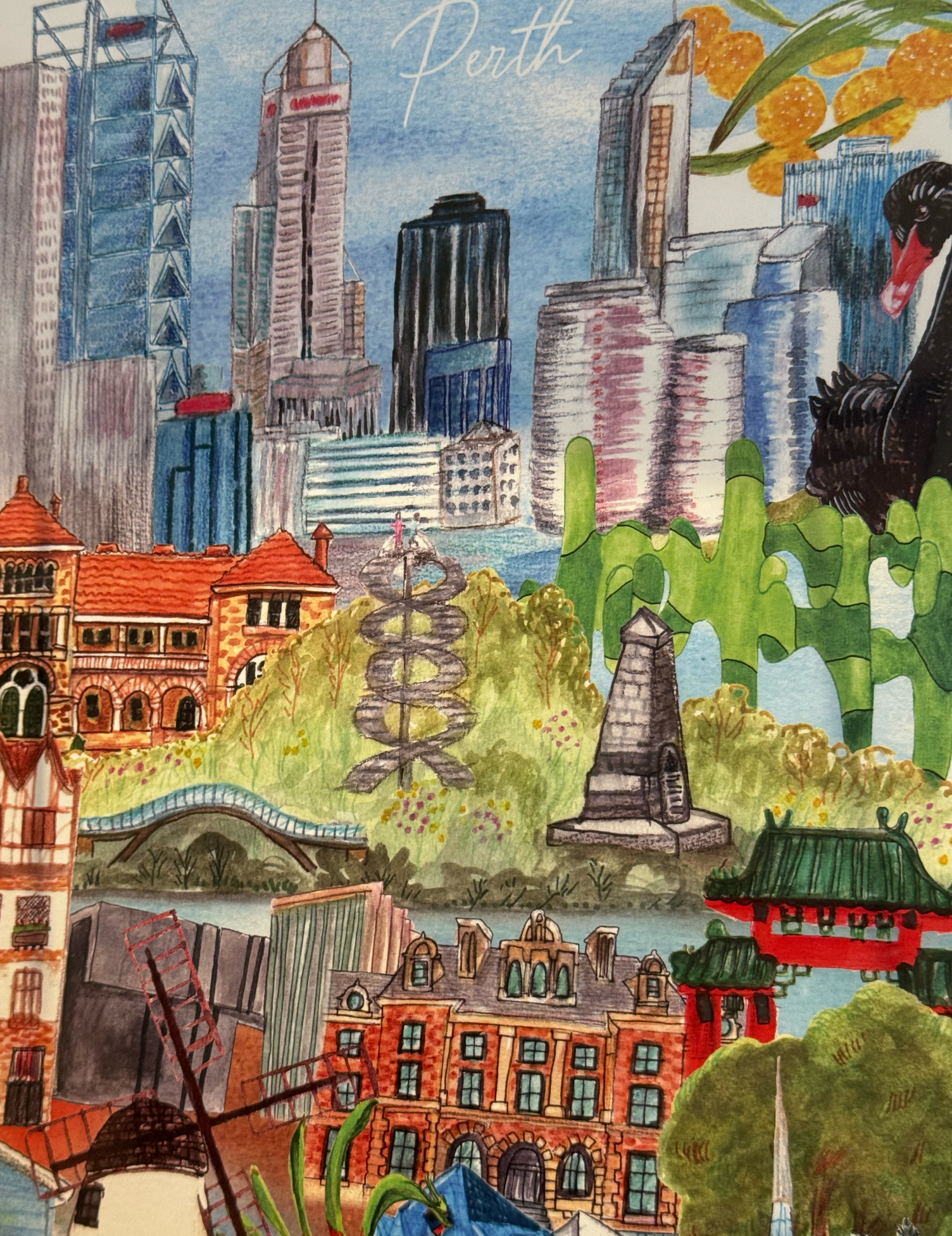 A3 - The perfect size for your wall to explore all the detials Kim has Painted into this beautiful mixture of Perth.