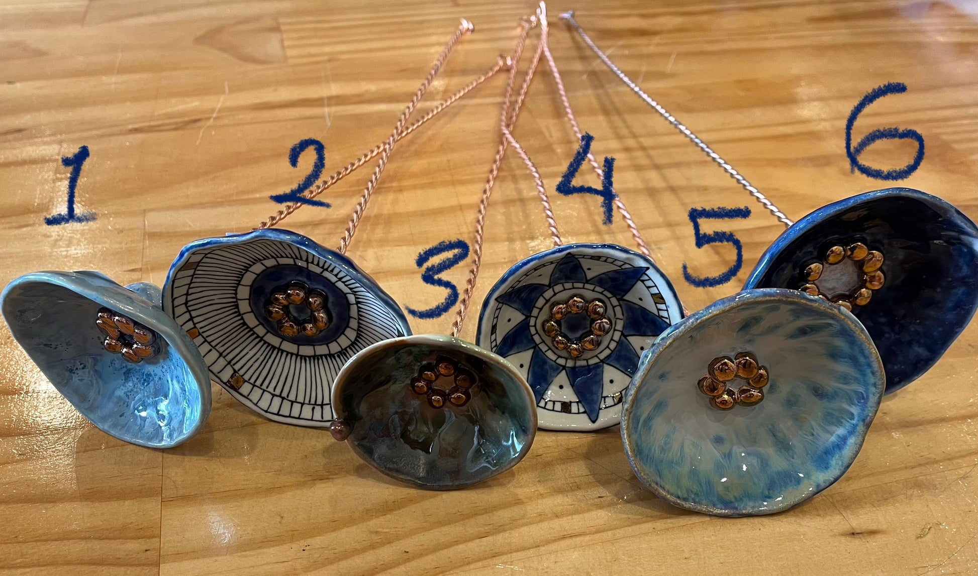 All of these bee baths are hand made with love by Mae buttons. the are all roughly 7-10cm in diameter and 40-45cm in height on a wire base